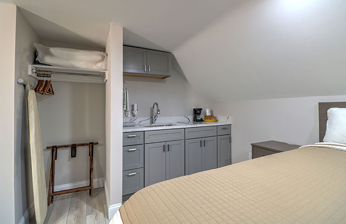 Lower Level King Bed Efficiency Room – Click or tap photos for larger views.